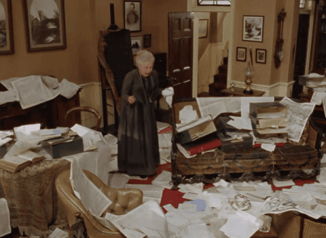 ブレッシントンが怯えていたのは銀行強盗犯の仮釈放を知ったからです。新聞の記事を読み取り乱しますが、強盗だったことを隠すため、近所に泥棒が入ったといって騒いでいました。