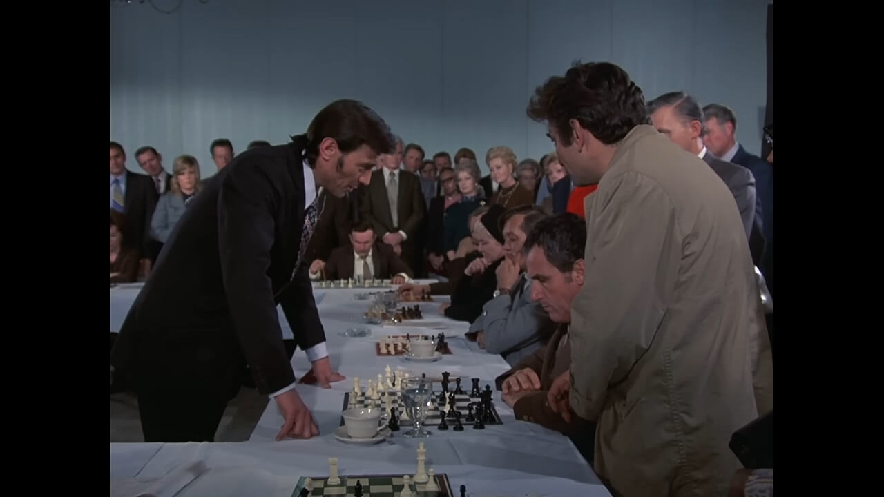 荷物には、デューディックが愛用する駒が入っていませんでした。チェスの王者が愛用の駒も持たずに失踪するという状況に、コロンボは違和感を抱きます。