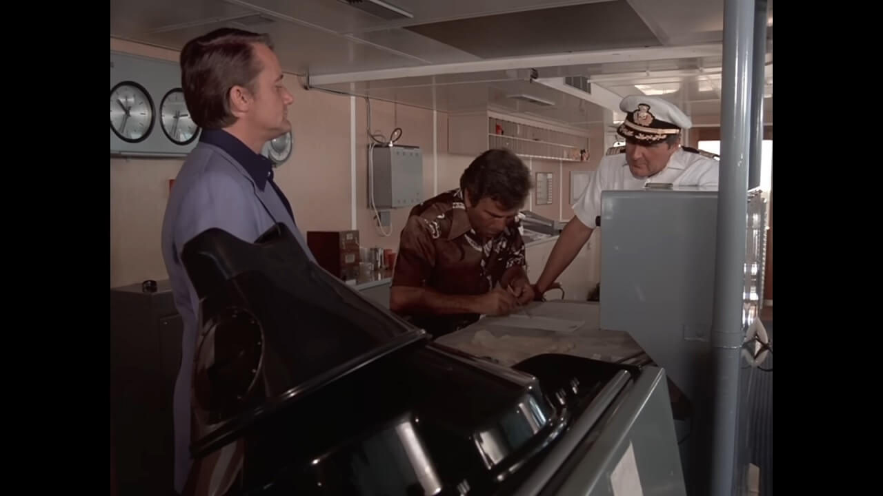 - このエピソードは、実在する豪華客船で撮影されました。撮影当時は「スピリット・オブ・ロンドン号」という名称でしたが、撮影後の1974年10月に「サン・プリンセス号」に改名され、1975年に放送されました。