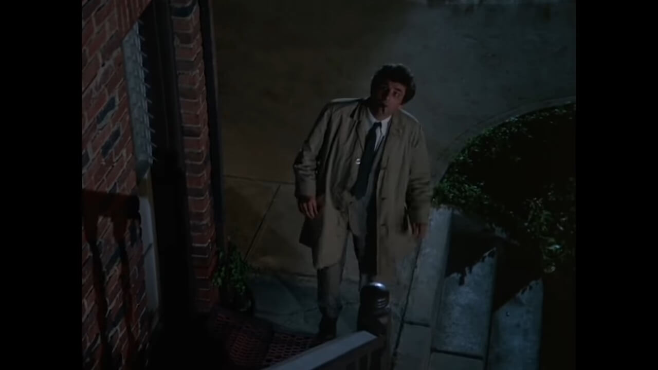 コロンボは車が爆発した現場から証拠品がみつかったと、嘘をつきます。